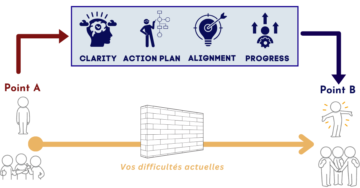 Nous clarifions les objectifs communs et alignons les équipes sur une vision partagée. En cultivant un environnement d’apprentissage continu, vous améliorez la performance globale, permettant à chacun de s’épanouir et de donner le meilleur de lui et d’elle-même.